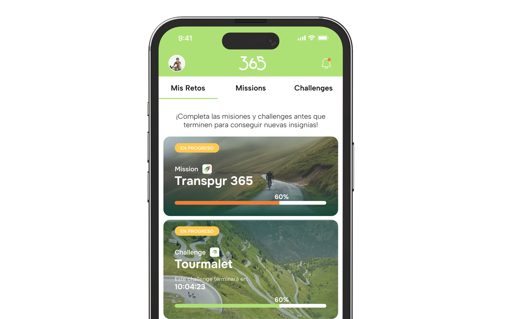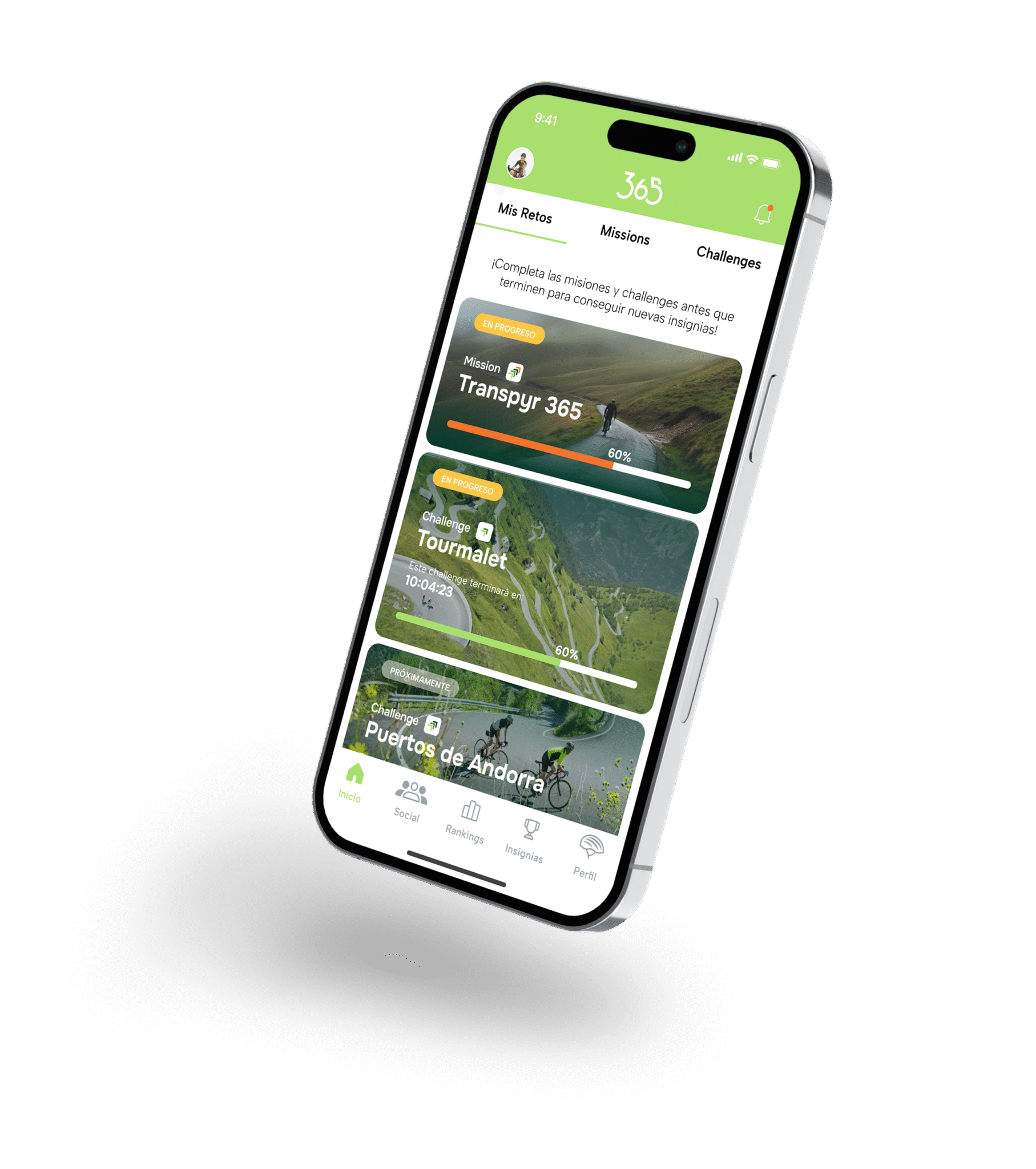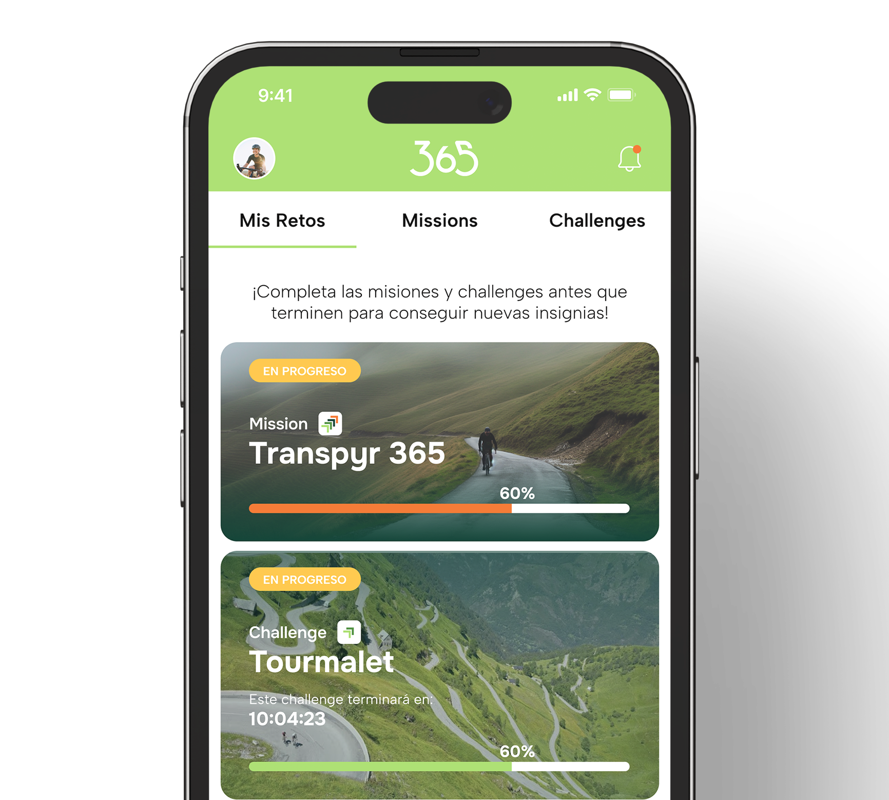 Elige una reto, sigue la ruta y supera los checks de cada etapa para conseguir nuevas insignias y recompensas. ¿Estás listo para un nuevo desafio? ¡Demuestra hasta dónde puedes llegar sobre la bici!